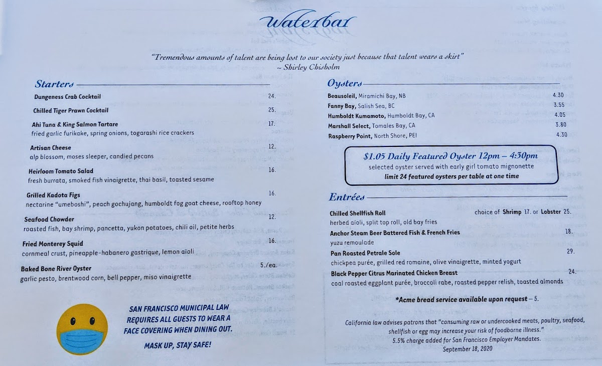 Perched along the stunning Embarcadero in San Francisco, Waterbar Restaurant specializes in exquisite seafood that truly captivates the senses. With a commitment to freshness, their menu features a remarkable selection of oysters, including Drakes Bay and Damariscotta, all of which are available at approachable prices. For shellfish enthusiasts, the Shellfish Indulgence Platter offers a lavish assortment, perfect for sharing or indulging solo.